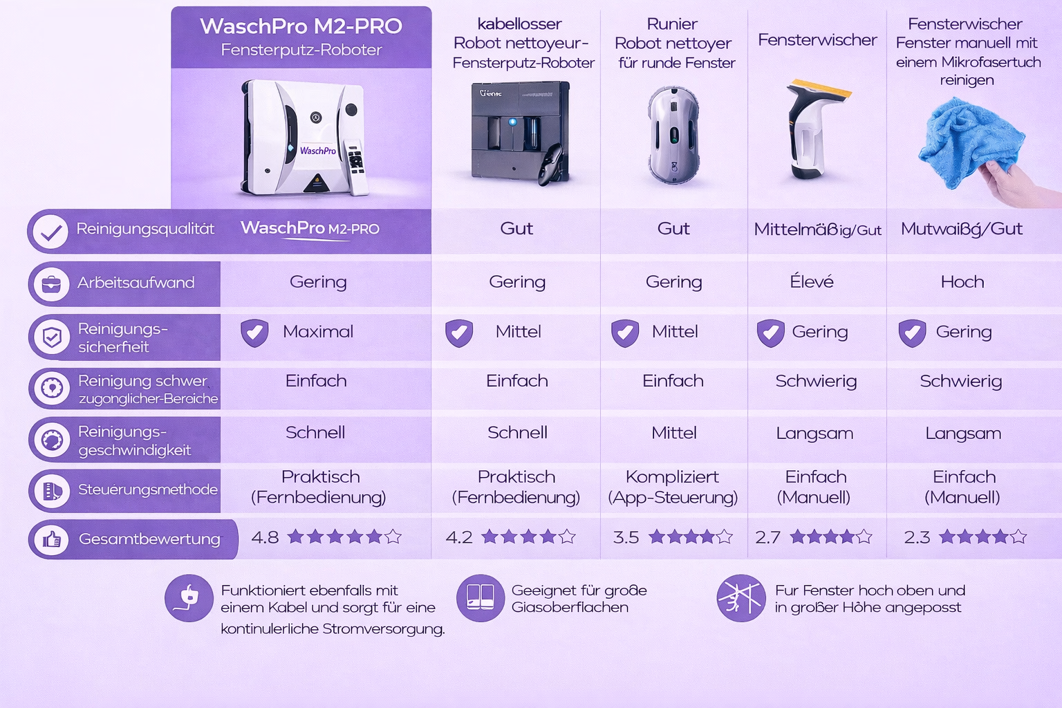 Ich war beim ersten Mal skeptisch, aber dieser Roboter-Waschtisch hat meine Routine völlig verändert. Halten Sie meine Fenster in wenigen Minuten ohne Mühe instand – das empfehle ich allen meinen Freunden!